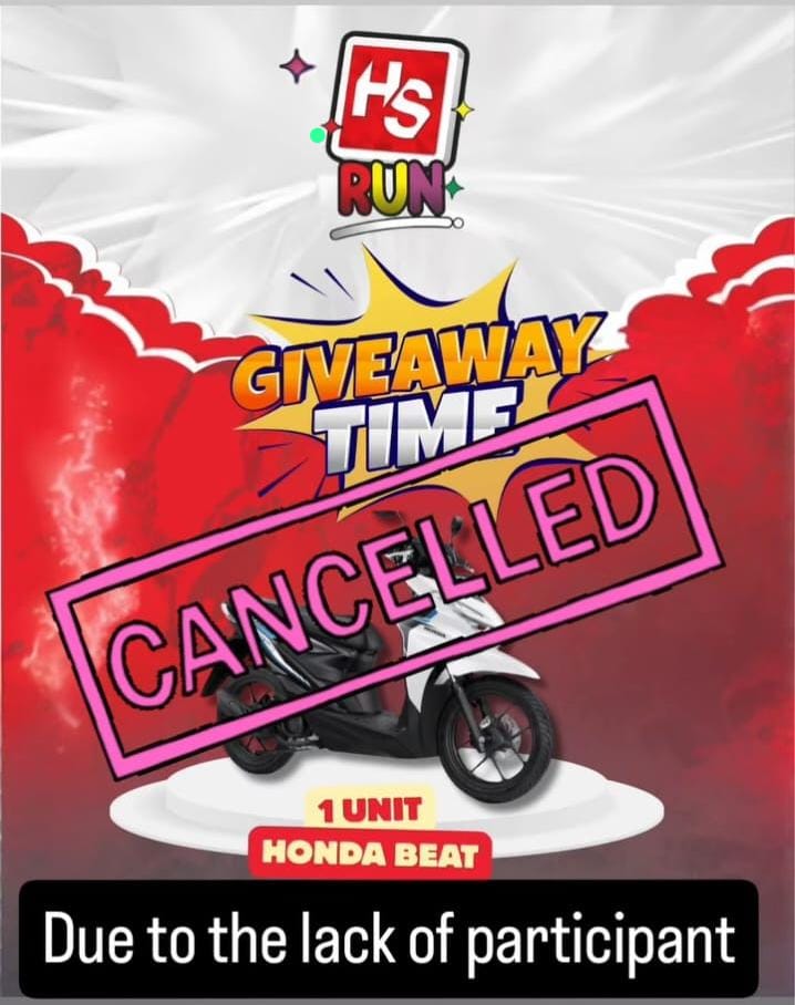 Sebagai bentuk tanggung jawab, panitia HS Run menyampaikan akan memberikan kompensasi sebesar Rp150.000 kepada setiap peserta yang telah membuat video, sebagai pengganti pembatalan lomba berhadiah motor.